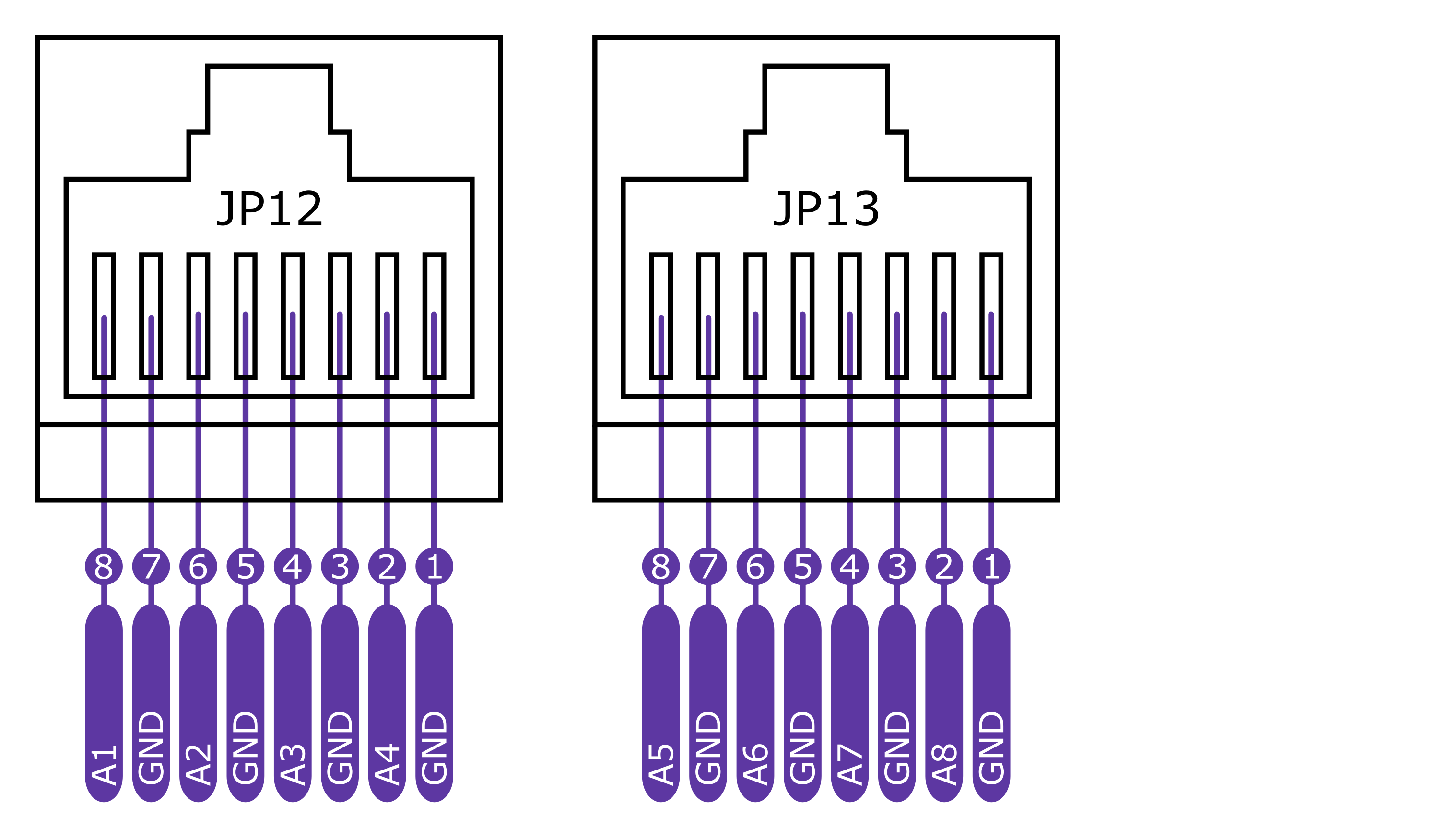 JP13 | A5-A8 | 1-Wire A1-A4 + 4xGND RJ-45 con. |