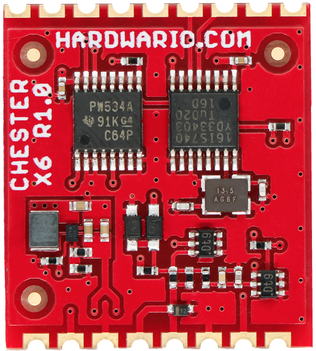 The CHESTER-X6 provides interface for HARDWARIO S-Wire protocol targeting low-power peripherals using 3 wire connection (+5V, GND, DATA). It implements also 5V boost converter and 5V power supply output.