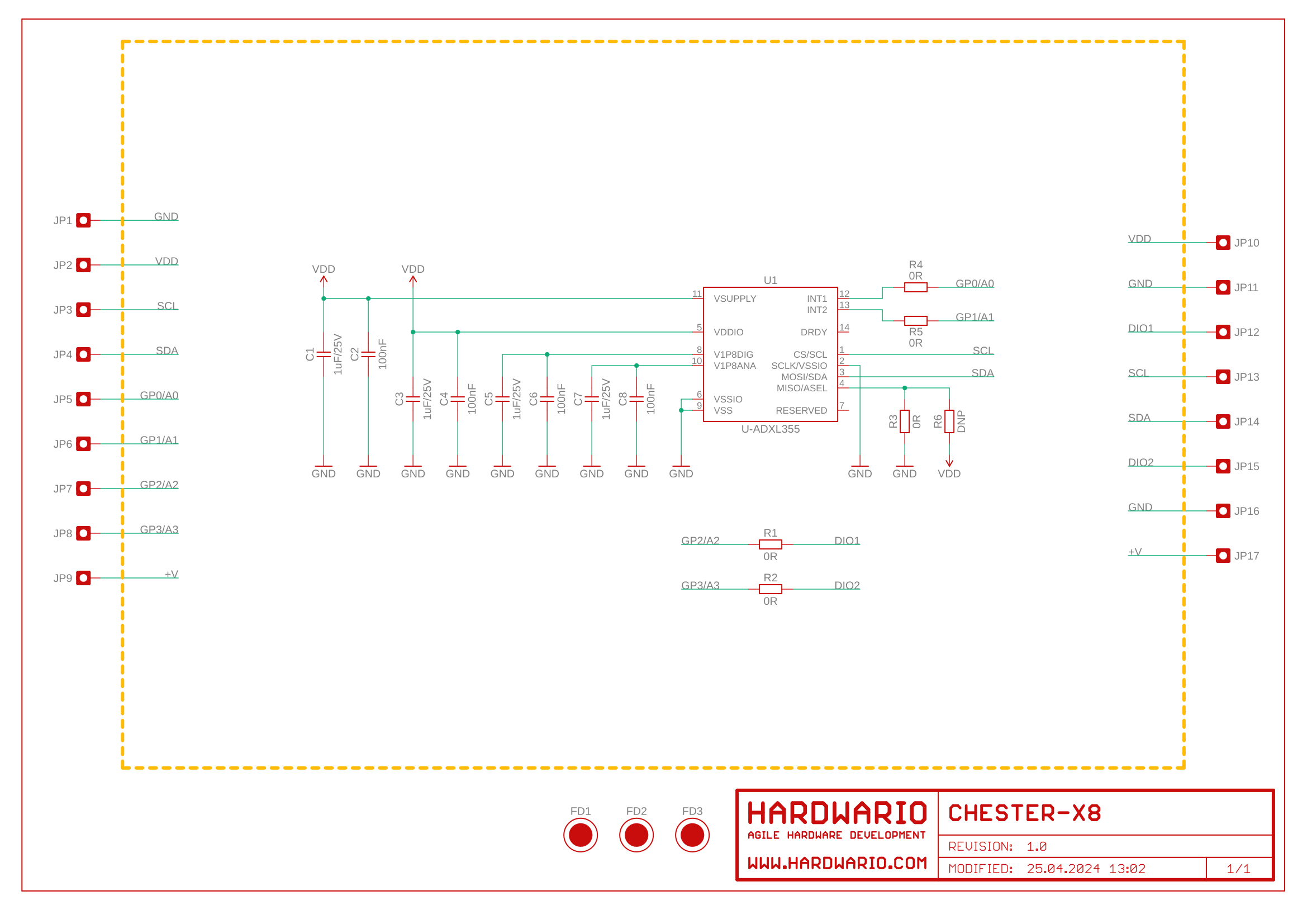 CHESTER-X8 implements precise low zero g offset 3-axis accelerometer ADXL355 providing the resolution up to 3.9 μg/LSB and measurement range ±2g, ±4g, ±8g.