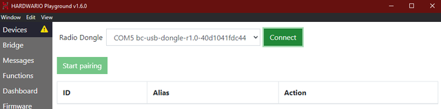 After you successfully connect to your Radio Dongle the Start pairing button should light up and if there are any paired devices, you should see them in the list.