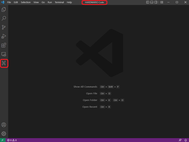 You should see HARDWARIO Logo on the side panel and the HARDWARIO Code at the top of the window