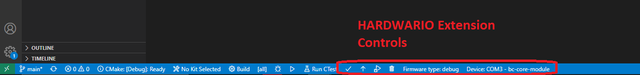 or any other options mentioned before. Just select the HARDWARIO logo on the side panel and select Attach Debugger or Build + Flash (Debugger) option.