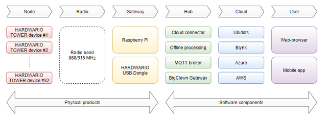 An equal level of modularity has been also taken on the software level. Either on a device side, anyone can master creating the firmware with the properly documented APIs and examples, or the distributed system approach of MQTT messages on the side of the hub.